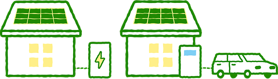 発電した電気を蓄電池や電気自動車にためて使用します。