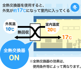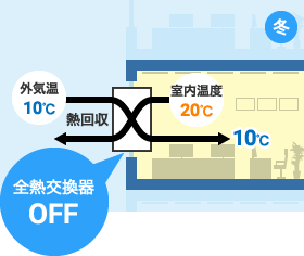 全熱交換器が設置されていますが、空調設備が稼働しているにもかかわらず、スイッチがOFFになっていました。全熱交換器は換気の際に捨てられてしまう室内の暖かさや涼しさを再利用(熱回収)しながら換気する省エネ装置です。空調設備が稼働している際は、全熱交換運転を行うことで、空調機の電力使用量を削減することが出来ます。
