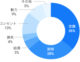 エアコンの設定温度をそれぞれ1℃緩和し消費電力の削減を図ります。1℃の緩和により空調負荷(空調消費電力)を約10%削減出来ると想定します。