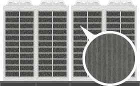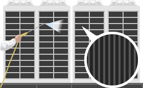 室外機のフィンコイルを定期的に薬品洗浄することで空調機効率の低下が防止され、消費電力の低下(省エネ)となります。