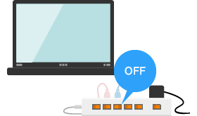 帰宅後の夜間や休日、またパソコンを長時間使用しない時は、スイッチ付テーブルタップを使用し、テーブルタップのスイッチをOFFにすることで待機電力を削減します。