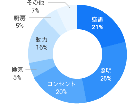 エアコンの設定温度をそれぞれ1℃緩和し消費電力の削減を図ります。1℃の緩和により空調負荷(空調消費電力)を約10%削減出来ると想定します。