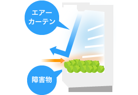 スリットを塞いでいる値札や商品を撤去して、エアカーテンの流れを妨げないようにします。