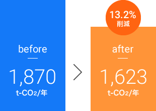 動力用変圧器2台のうち、負荷率の低い1台を停止し、負荷を統合して電力使用量の削減を図ります。