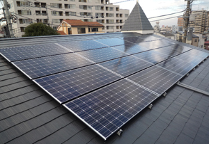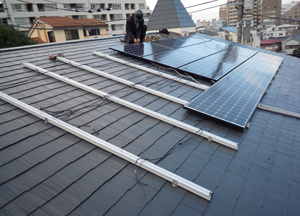 モジュールの質量は1枚約15kg。システム1kWあたり100~150kgと言われています。16~20枚前後載せます。総量300kgほどになりますが、屋根の広い面積で分散して負担するため通常建物への影響はありません。