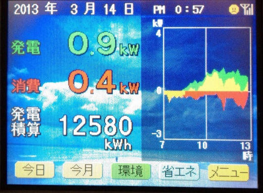 2009年6月から売電がスタート、特にトラブルもなく、現在は3年7ヶ月で発電量累計12,580kWh、売電量累計7,699kWh、約36万円の収入を得た事になります。