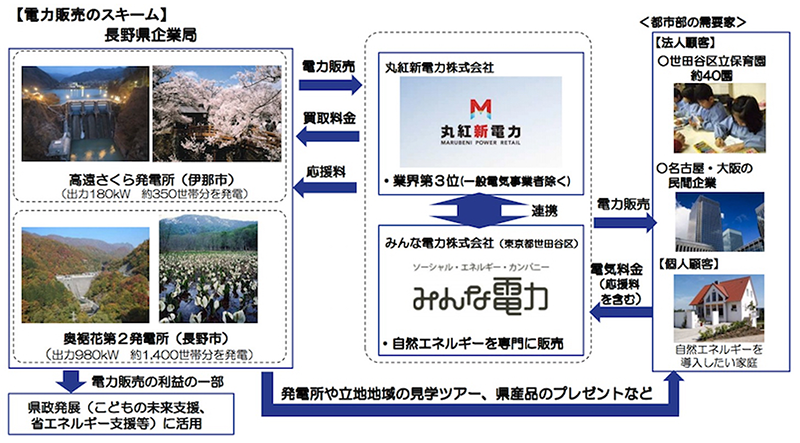 電力はまず丸紅新電力が0.5円上乗せした単価で買取り、みんな電力が東京・中部・関西電力管内で販売する。その一部を区立保育園で使用すべく、世田谷区とみんな電力が随意契約により契約締結している。