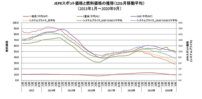 発電量に影響する燃料(原油・LNG・石炭)の価格変動を迅速に料金へ反映させるための費用項目。料金メニューの算定ベースとなった基準燃料価格と直近3ヵ月の平均燃料価格の差に基づき単価を決定する。各燃料の市場価格において上がり基調であればプラスとなり、下がり基調であればマイナスにもなる。東電EP等の旧一般電気事業者ごとに月毎の単価が発表される。 燃料調整費は、火力発電の燃料の価格変動を考慮したものだが、現状では電力卸市場に卸されている電気の大半が火力発電によるものであり、再エネの大半を占めるFIT電気はこの市場価格によって調達価格が決定する。新電力事業者も、旧一電の料金動向に合わせるため、燃料調整費を料金メニューに含んでいることが多い。