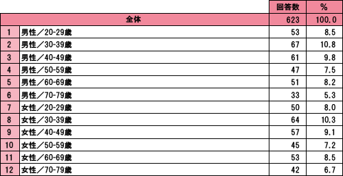 東京都内在住者、20 歳~79 歳(ただし、学生は除く。)、男女