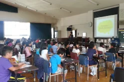 翠田 「記録シート」は6月の環境月間にやってもらうのですが、もっと温暖化対策について理解してもらおうと始めたのが出前授業です。「記録シート」の取組みを4月の校長会でお願いしておりますが、その折に出前授業の希望も募っています。今年は4校、5回(10クラス)やりました。