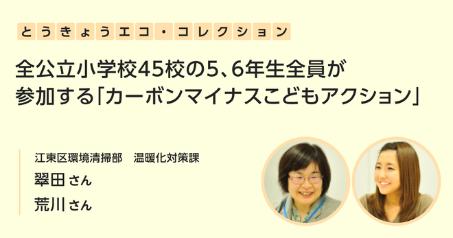 「全公立小学校45校の5、6年生全員が参加する『カーボンマイナスこどもアクション』」江東区環境清掃部 温暖化対策課|とうきょうエコ・コレクション