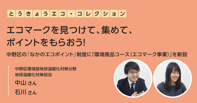 「エコマークを見つけて、集めて、ポイントをもらおう! 中野区の『なかのエコポイント』制度に『環境商品コース(エコマーク事業)』を新設」中野区環境部地球温暖化対策分野 地球温暖化対策担当|とうきょうエコ・コレクション