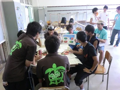 澁谷 はい。たまたま校長がご覧になって。人間環境学部ではこの依頼を受けて、大学と高校の連携の一環と位置付けてその話がミズミドにきたのです。ちょうどその頃、社会学部のゼミでも環境教育で実践的なことを模索していたようで、それなら人間環境学部と社会学部が協力して城山高校で環境教育の授業を行おう、ということになったそうです。ミズミドのメンバーと社会学部のゼミ生でSEETというプロジェクトチームを発足させたのです。それが今のサークルに繋がっています。サークルの人数は、以前は14、5人だったそうですが、今年は9名です。