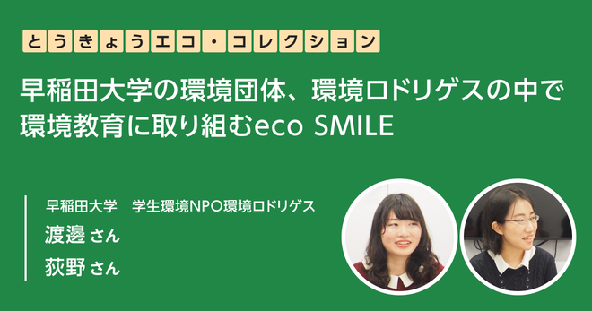 「早稲田大学の環境団体、 環境ロドリゲスの中で環境教育に取り組むeco SMILE」早稲田大学 学生環境NPO環境ロドリゲス|とうきょうエコ・コレクション