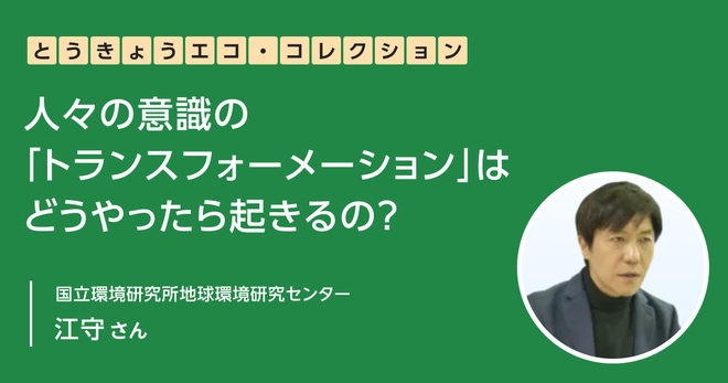 「人々の意識の『トランスフォーメーション』はどうやったら起きるの?」国立環境研究所×クール・ネット東京 第1回|とうきょうエコ・コレクション