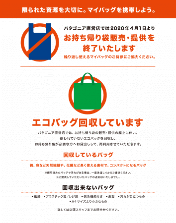 (新型コロナウイルス感染症拡大の影響による直営店の臨時休業などにより、お持ち帰り袋のご提供終了は2020年8月27日に延期しました。)