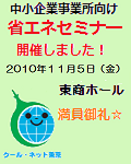 2010年11月5日(金)に東商ホールにおいて、東京商工会議所と共催で中小規模事業所向け「省エネセミナー」~好事例に学ぶ省エネのツボ~を開催いたしました。