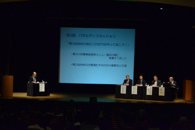 環境経済株式会社の尾崎氏をお迎えしての基調講演や、一般電気事業者の東京電力株式会社及び新電力の株式会社エネットによる発表、新電力を導入し、積極的に省エネ・節電を実施している株式会社昌平不動産総合研究所の事例発表、東京都の支援策のご紹介、パネルディスカッションなど、電力自由化とは何か、電力自由化までに中小規模事業所が行うべき方策等について、2016年の電力自由化に向けて役立つ内容で開催しました。