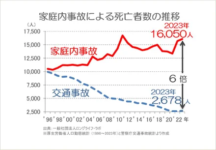 石原: ということは2023年の家庭内事故は交通事故の約6倍ってことですね。家の中の方が危ないんですね。
