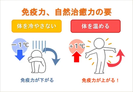 石原: まず体温が1度下がってしまうと免疫力って約30%落ちるんです。なので低体温の人の方が感染症にかかりやすくなると言われています。