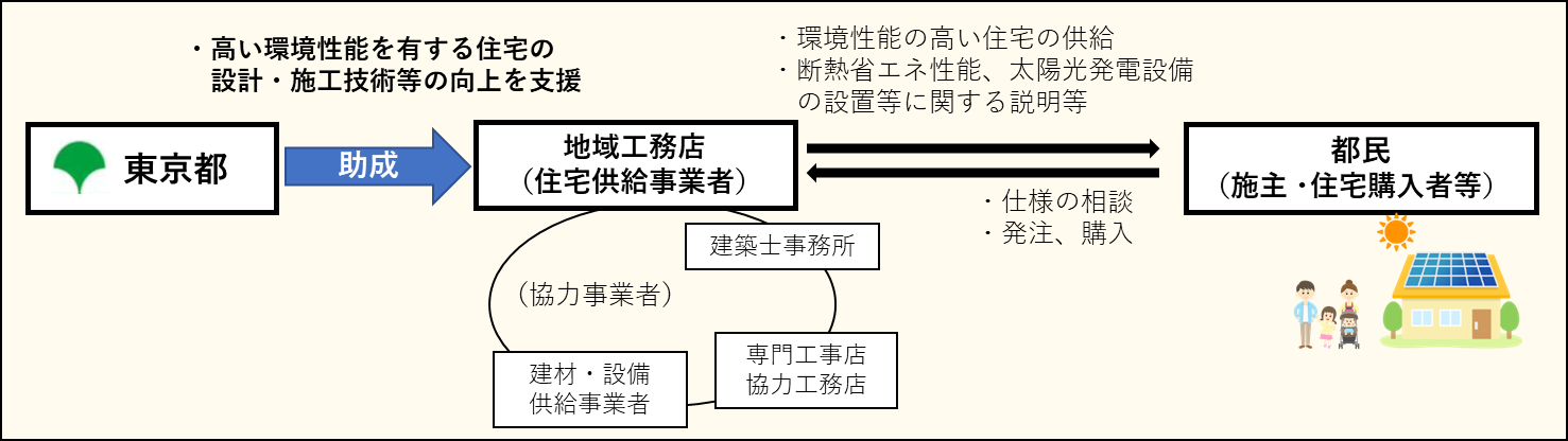 | 助成対象者 | 都内に本店又は支店を有し、都内の新築住宅等で床面積が2千㎡未満のものを供給した実績を有する建物供給事業者のうち、中小企業者等に該当する者 | |