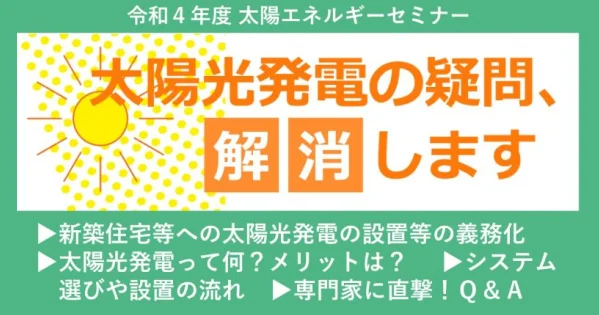 令和4年度 太陽エネルギーセミナー 太陽光発電の疑問、解消します