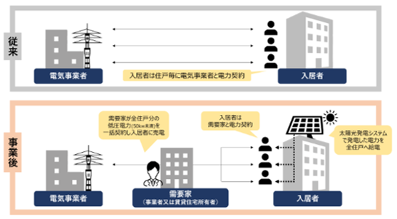 賃貸住宅所有者と入居者で行う受電契約書のひな形若しくは一括受電に対する説明資料等、