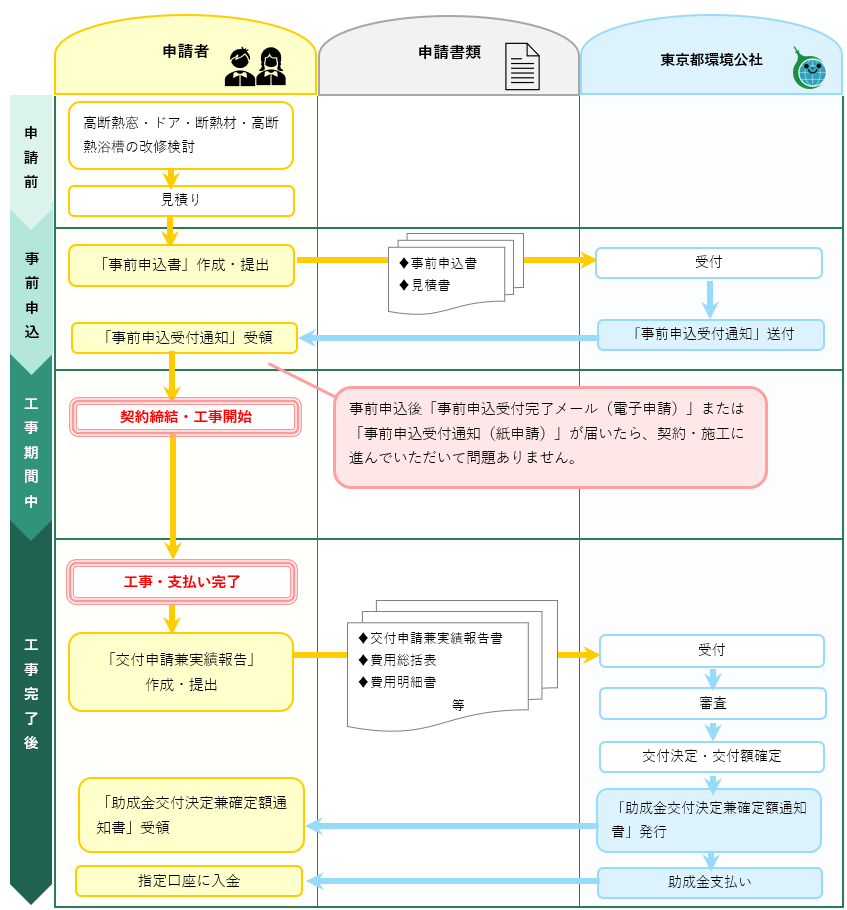 ただし、令和6年4月1日から令和6年6月30日までに契約締結又は契約締結して工事をした助成対象事業についても、事前申込の手続きが必要です。