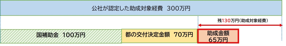 (助成対象経費-国補助事業等の助成基準額-公社助成事業の助成額)×1/2