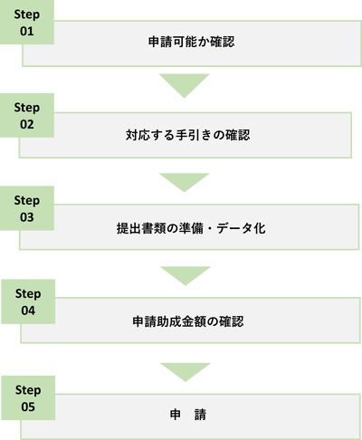 - 事前申請フローの確認は「助成金を受け取るまでのスケジュール(事前申込)オンライン申請のみ可」でご確認ください。