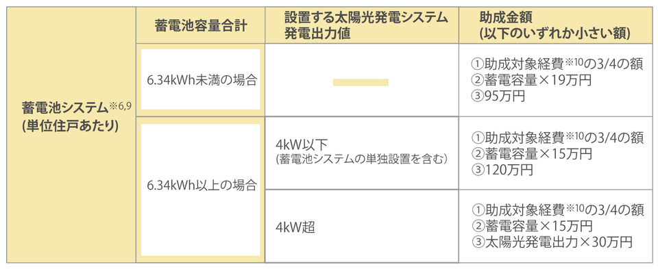 ※9 複数台設置することも可能ですが、蓄電池システムの電気を使用する一住戸あたりの助成対象額の上限は、上表の助成額のいずれか小さい額になります。