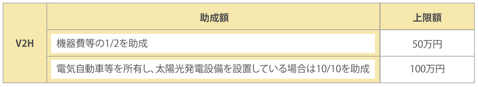 (水準、太陽光発電出力、オール電化の有無) - V2Hを申請される方は必ずV2Hの納期をご確認ください。実績報告時までに設置完了が難しい場合は「電気自動車等の普及促進事業(V2H)」への申請をご検討ください。詳細はこちら