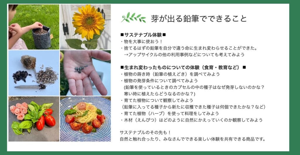 スプラウトペンシルは使い終わった鉛筆を捨てるのではなく土に植えて植物に生まれ変わらせるという体験を通して、もっと身近にエコやについて楽しみながら考えていただきたいという思いで生まれました。