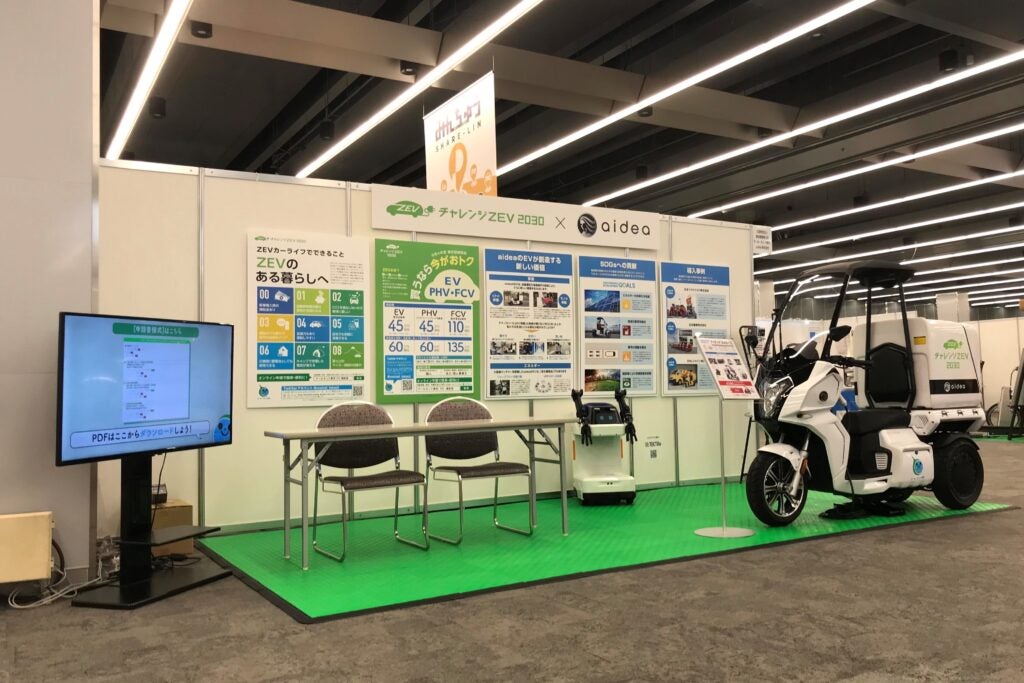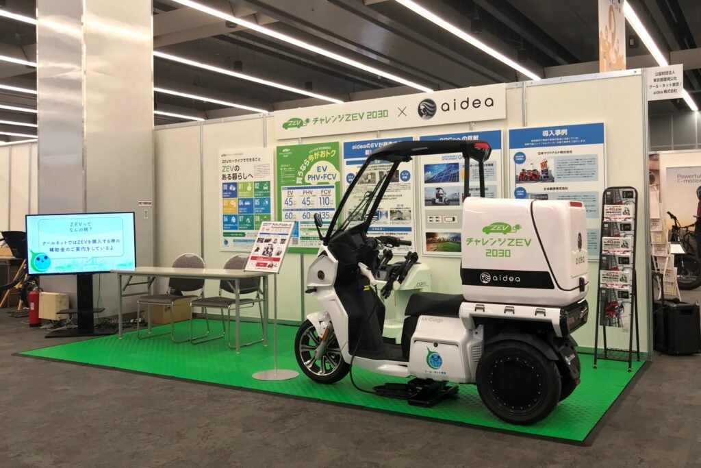 また、aidea様には、チャレンジZEV2030のステッカーを貼った、環境や社会にやさしい電動3輪バイク「AAカーゴ」を展示いただきました。